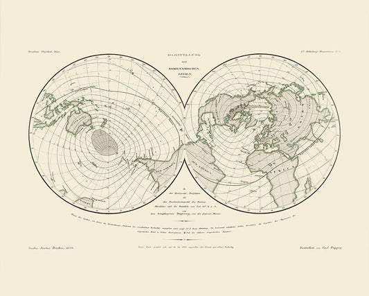 World Isodynamic Lines - Perthes 1839 White Modern Wood Framed Art Print with Double Matting by Perthes