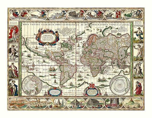 World America 1492 to 1499 - Bleau White Modern Wood Framed Art Print with Double Matting by Blaeu