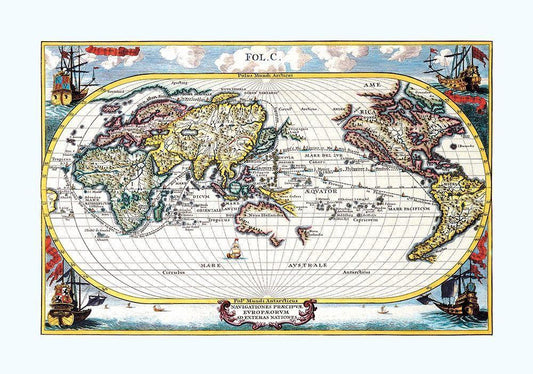 World Continents - Coronelli 1742 White Modern Wood Framed Art Print with Double Matting by Coronelli
