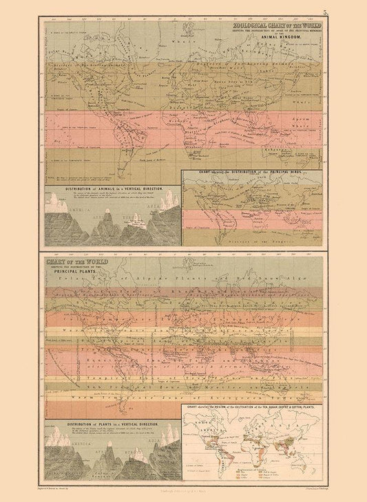 Zoological Chart World - Black 1867 White Modern Wood Framed Art Print with Double Matting by Black