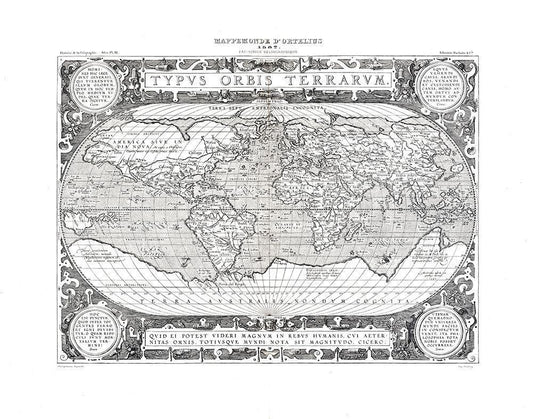 World - Ortelius 1587 White Modern Wood Framed Art Print with Double Matting by Ortelius