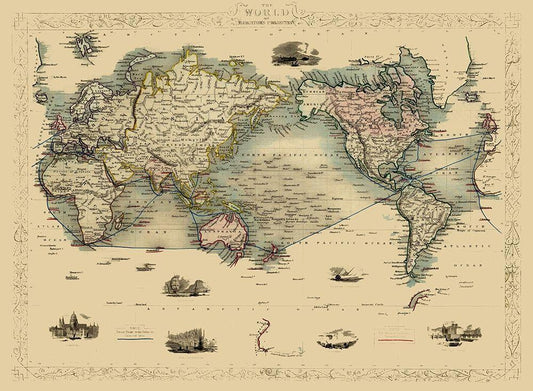 Mercator Projection - Weimar 1853 White Modern Wood Framed Art Print with Double Matting by Weimar