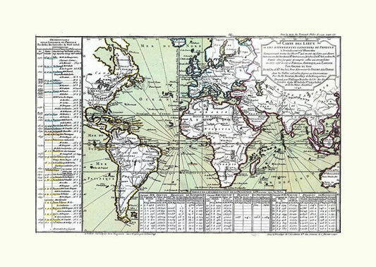 World - Vaugondy 1752 White Modern Wood Framed Art Print with Double Matting by Vaugondy