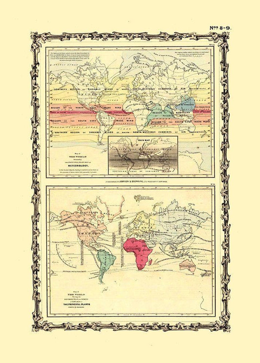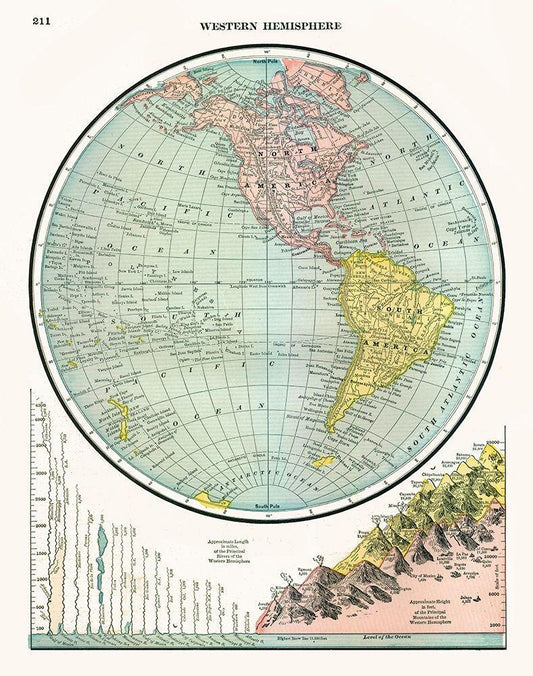 Western Hemisphere - Johnson 1888 White Modern Wood Framed Art Print with Double Matting by Johnson