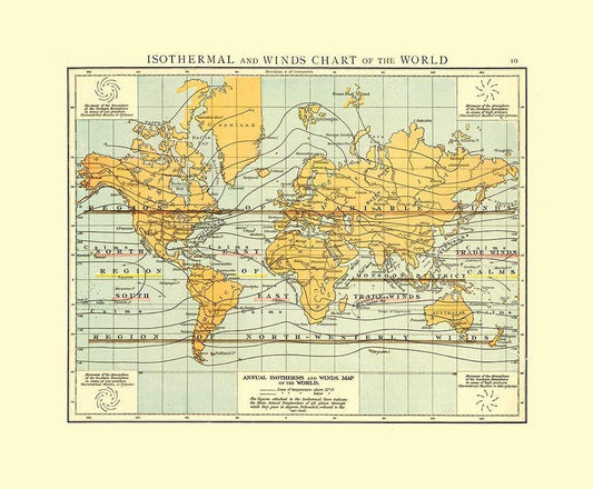 Isothermal with Wind Charts - Hoen 1896 White Modern Wood Framed Art Print with Double Matting by Hoen