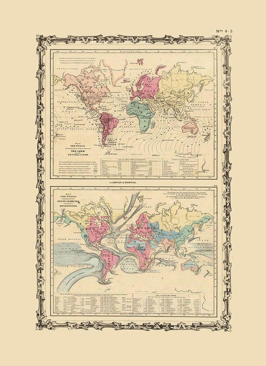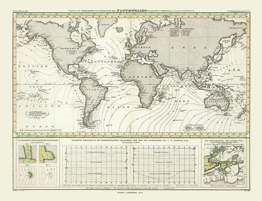 World Tidal Waves - Perthes 1838 White Modern Wood Framed Art Print with Double Matting by Perthes