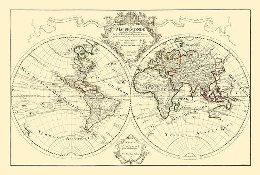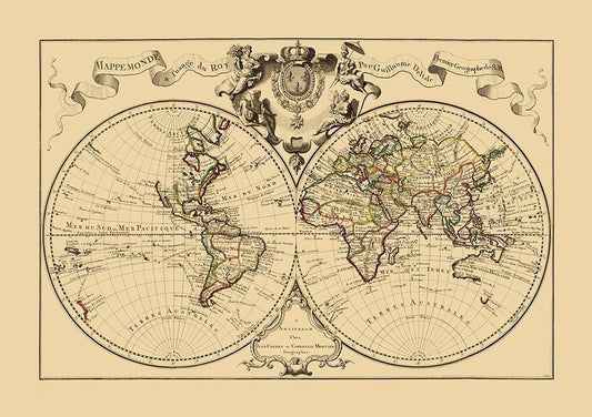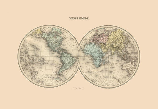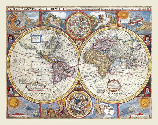 Western Eastern Hemispheres - 1627 White Modern Wood Framed Art Print with Double Matting by Unknown