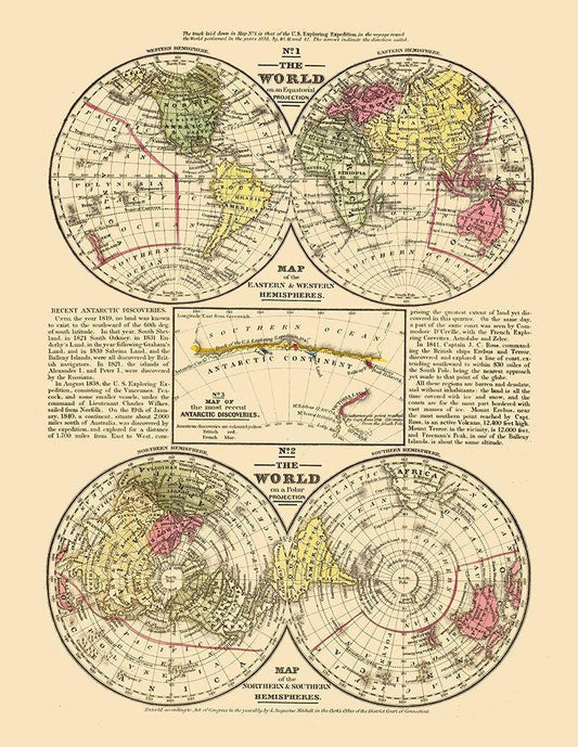 Equatorial Polar Projections - Mitchell 1839 White Modern Wood Framed Art Print with Double Matting by Mitchell