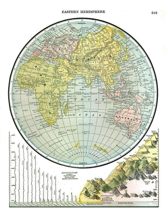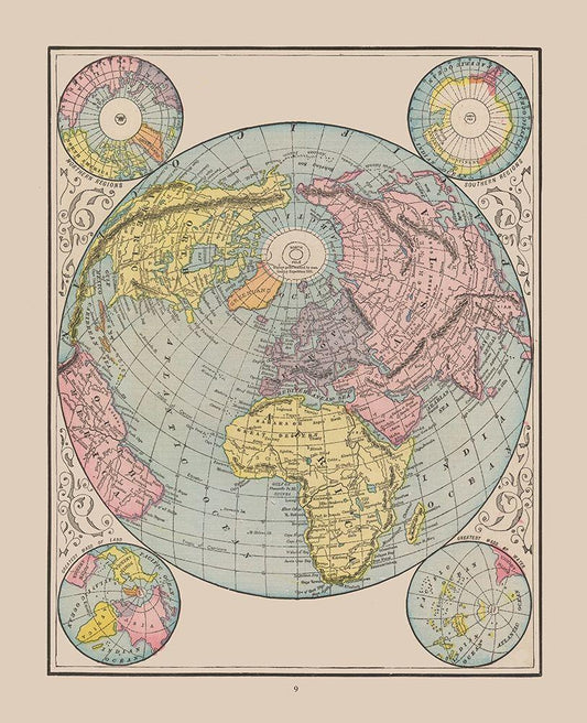 Eastern Hemisphere - Johnson 1888 White Modern Wood Framed Art Print with Double Matting by Johnson