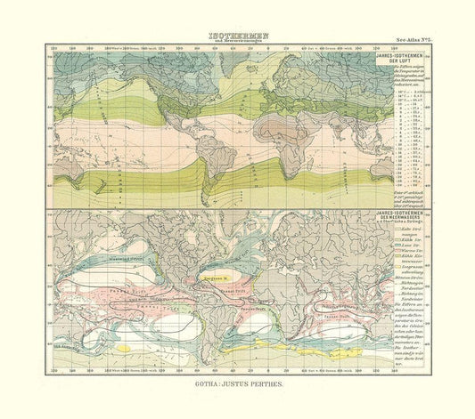 Isotherm Ocean Currents - Perthes 1914 White Modern Wood Framed Art Print with Double Matting by Perthes