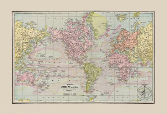 World Chart - Cram 1892 White Modern Wood Framed Art Print with Double Matting by Cram
