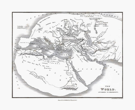World Herodotus - Oxford 1828 White Modern Wood Framed Art Print with Double Matting by Oxford