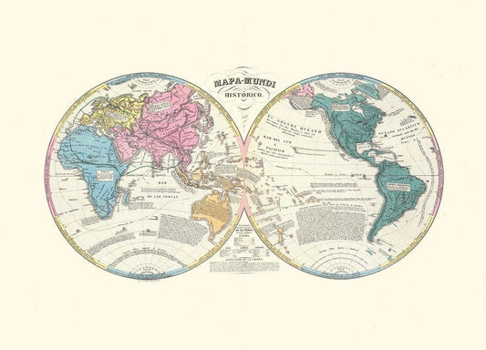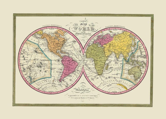 World Hemispheres - Cortambert 1880 White Modern Wood Framed Art Print with Double Matting by Cortambert