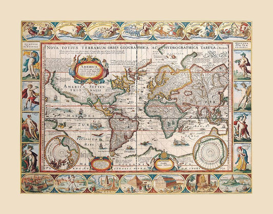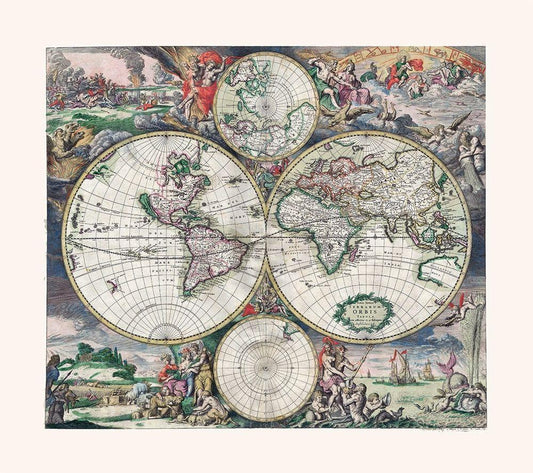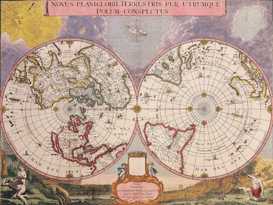 New Discovered Islands Asia Africa America White Modern Wood Framed Art Print with Double Matting by Gaultier