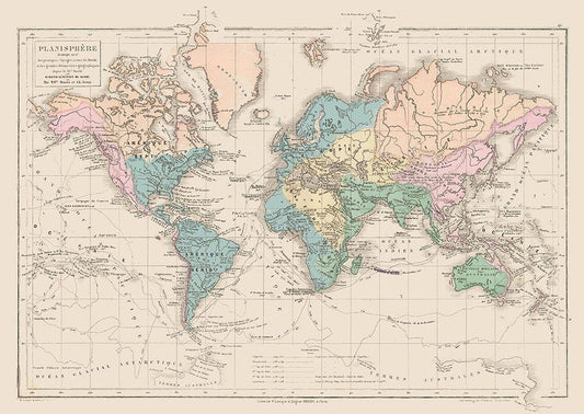 Planisphere Discoveries - Drioux 1882 White Modern Wood Framed Art Print with Double Matting by Drioux