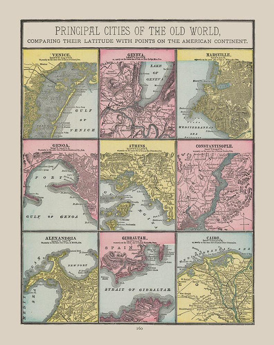 Principal Cities of World - Cram 1892 White Modern Wood Framed Art Print with Double Matting by Cram
