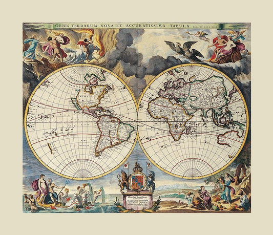 World - Blaeu White Modern Wood Framed Art Print with Double Matting by Blaeu