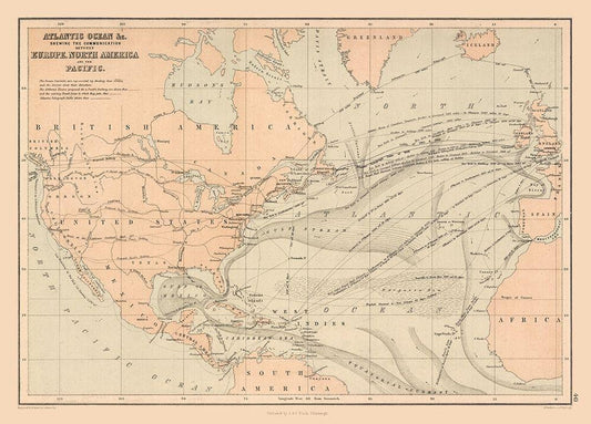 Telegraph Lines Europe America - Black 1867 White Modern Wood Framed Art Print with Double Matting by Black