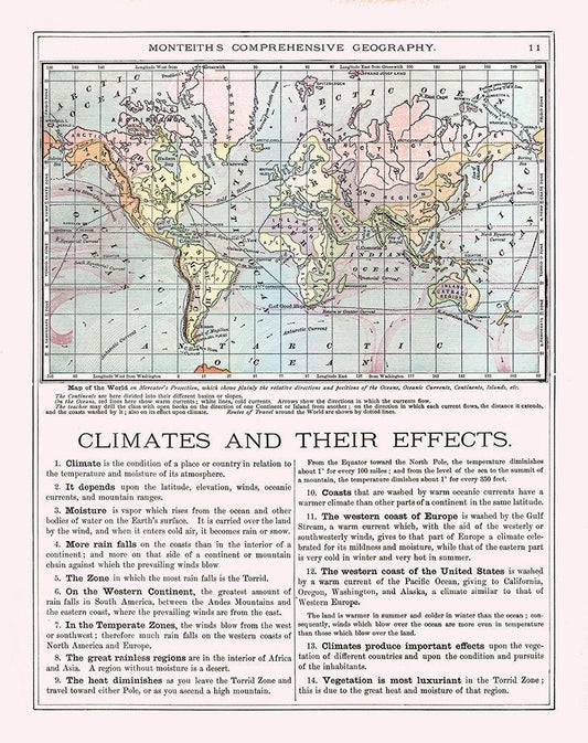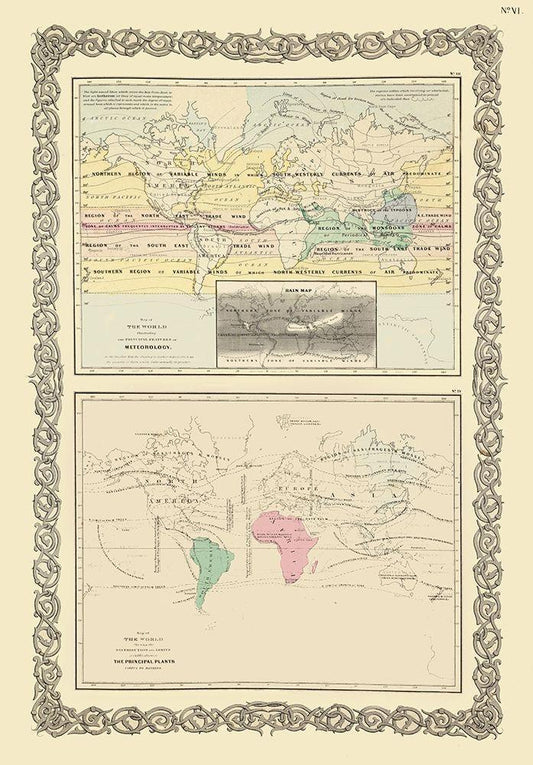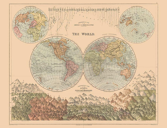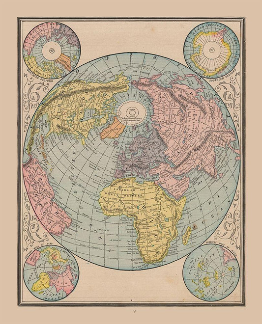 Western Eastern Hemispheres - Monteith 1882 White Modern Wood Framed Art Print with Double Matting by Monteith