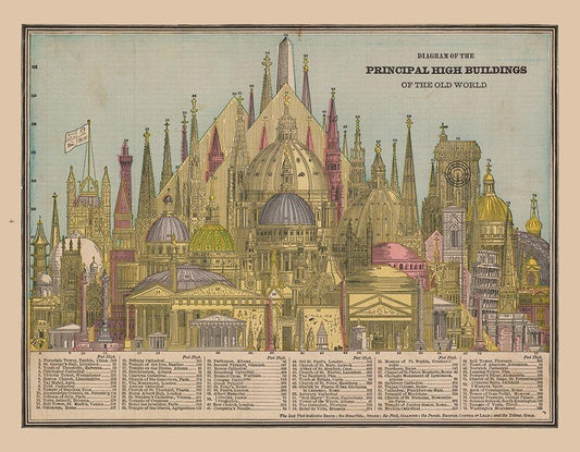 Principal High Buildings Old World - Cram 1888 White Modern Wood Framed Art Print with Double Matting by Cram