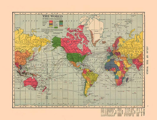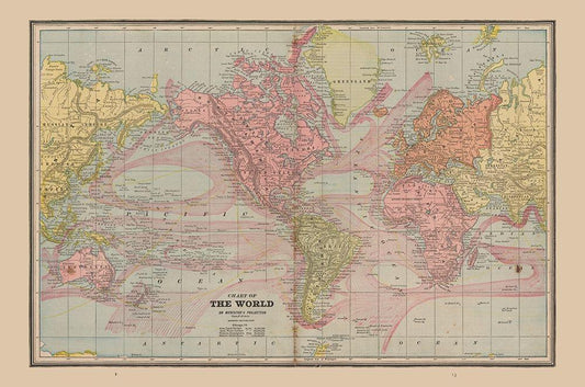 Chart of World - Cram 1888 White Modern Wood Framed Art Print with Double Matting by Cram