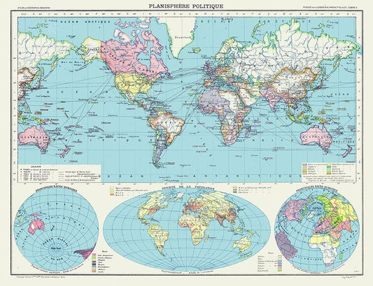 Political Planisphere - Schrader 1908 White Modern Wood Framed Art Print with Double Matting by Schrader