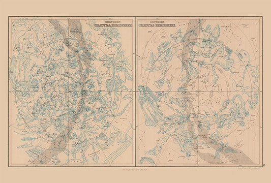Physical Planisphere - Schrader 1908 White Modern Wood Framed Art Print with Double Matting by Schrader