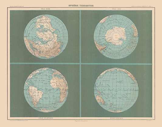 Terrestrial Sphere - Schrader 1908 White Modern Wood Framed Art Print with Double Matting by Schrader