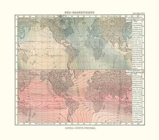 Earth Magnetism - Perthes 1914 White Modern Wood Framed Art Print with Double Matting by Perthes