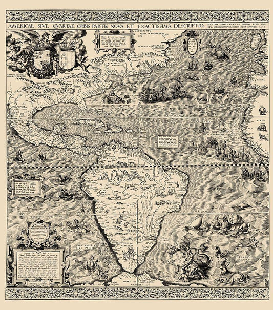 Western Hemisphere - Ortelius 1572 White Modern Wood Framed Art Print with Double Matting by Ortelius