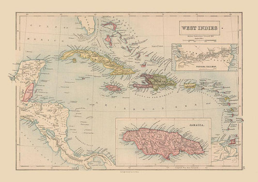 West Indies Central America - Bartholomew 1892 White Modern Wood Framed Art Print with Double Matting by Bartholomew