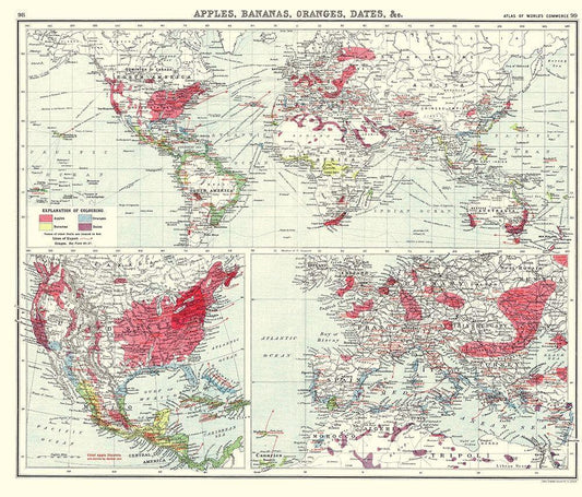Apples Bananas Oranges Dates World - Newnes 1907 White Modern Wood Framed Art Print with Double Matting by Newnes