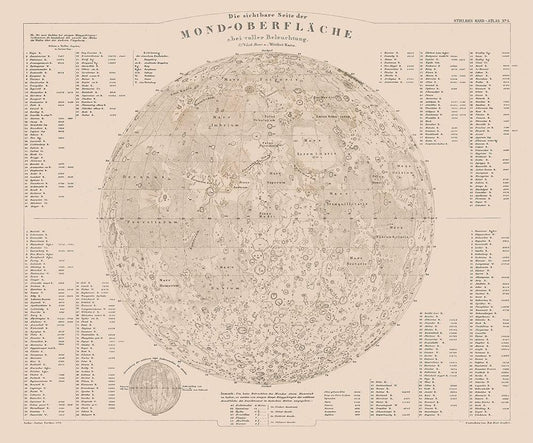 Moon Surface - Stieler 1885 White Modern Wood Framed Art Print with Double Matting by Stieler