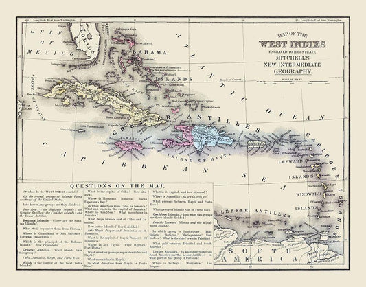 West Indies - Mitchell 1869 White Modern Wood Framed Art Print with Double Matting by Mitchell