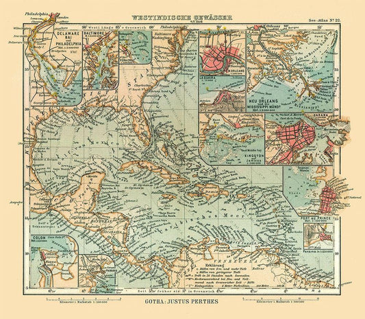 West Indies - Perthes 1914 White Modern Wood Framed Art Print with Double Matting by Perthes