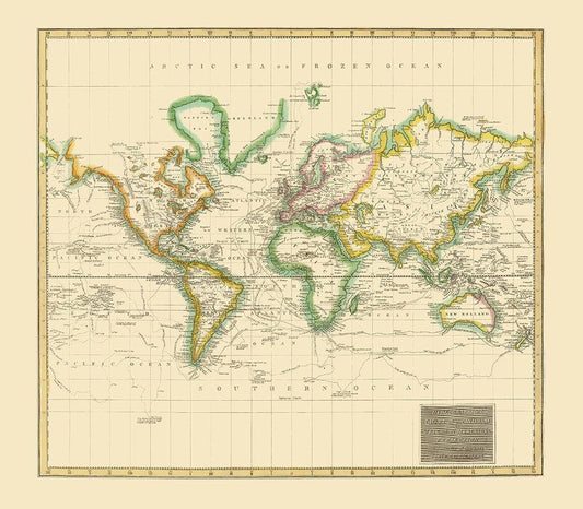 World Hydrographical Chart - Thomson 1814 White Modern Wood Framed Art Print with Double Matting by Thomson