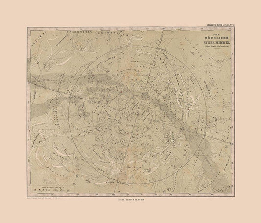Northern Sky - Stieler 1885 White Modern Wood Framed Art Print with Double Matting by Stieler
