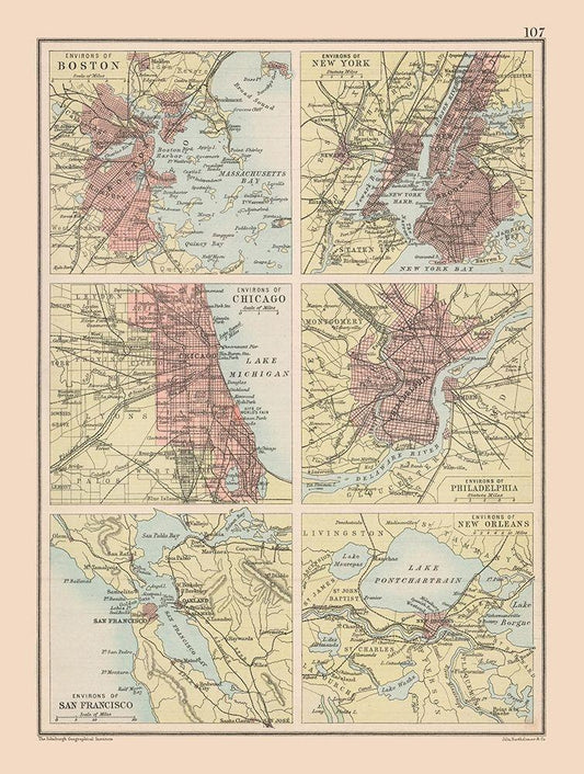 Major Cities United States - Bartholomew 1892 White Modern Wood Framed Art Print with Double Matting by Bartholomew