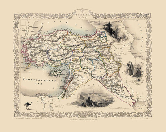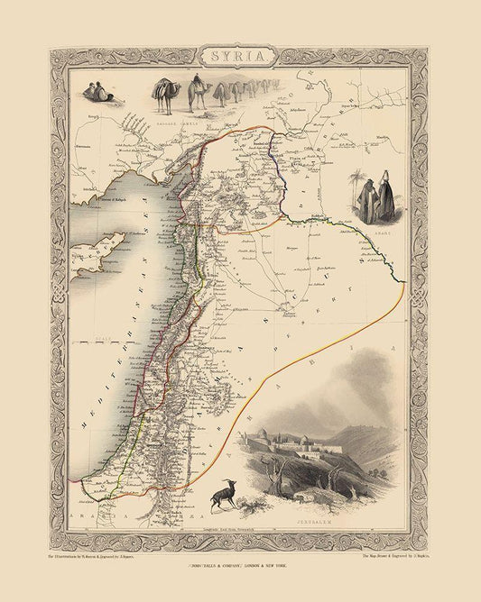 Middle East Syria - Tallis 1851 White Modern Wood Framed Art Print with Double Matting by Tallis