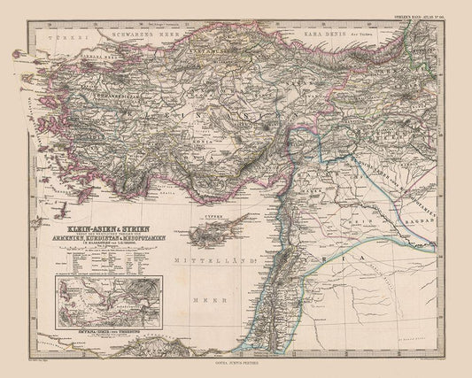 Asia Minor Syria Turkey - Stieler 1885 White Modern Wood Framed Art Print with Double Matting by Stieler