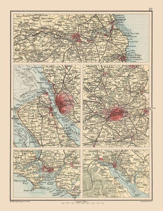 Major Cities United Kingdom - Bartholomew 1892 White Modern Wood Framed Art Print with Double Matting by Bartholomew