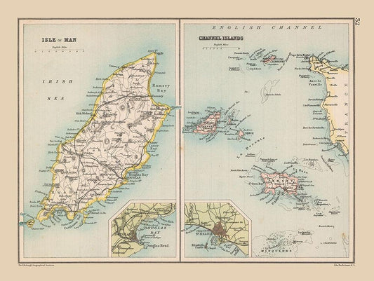 Isle of Man Channel Islands - Bartholomew 1892 White Modern Wood Framed Art Print with Double Matting by Bartholomew
