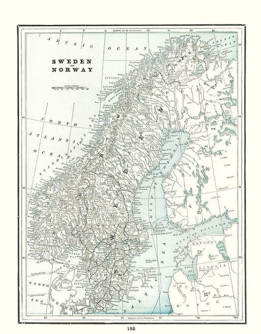 Sweden Norway - Cram 1888 White Modern Wood Framed Art Print with Double Matting by Cram