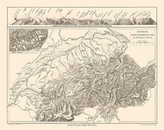Physical Switzerland - Drioux 1882 White Modern Wood Framed Art Print with Double Matting by Drioux