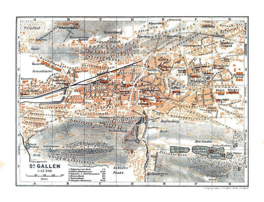 St Gallen Switzerland - Baedeker 1921 White Modern Wood Framed Art Print with Double Matting by Baedeker