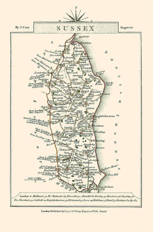 Sussex County England - Cary 1792 White Modern Wood Framed Art Print with Double Matting by Cary