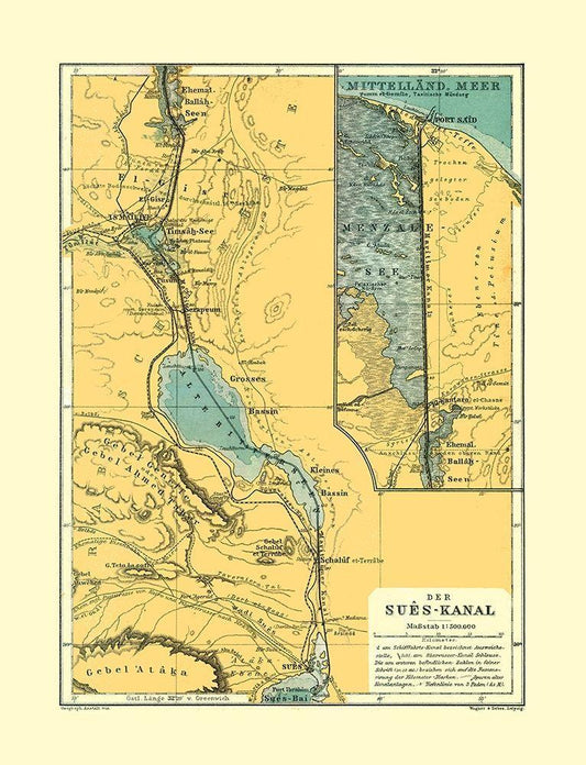 Suez Canal Egypt - Baedeker 1913 White Modern Wood Framed Art Print with Double Matting by Baedeker