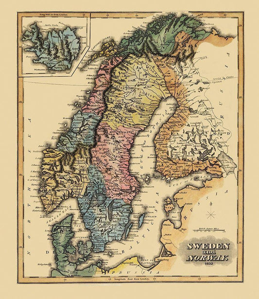 Sweden Norway - Lucas 1823 White Modern Wood Framed Art Print with Double Matting by Lucas