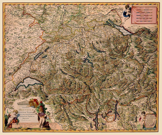 Switzerland - Visscher 1658 White Modern Wood Framed Art Print with Double Matting by Visscher