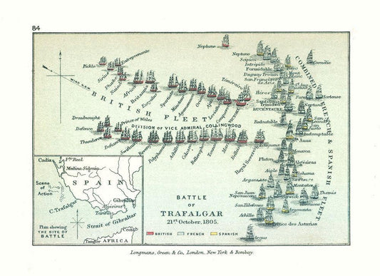 Battle Cape Trafalgar in 1805 Spain Europe White Modern Wood Framed Art Print with Double Matting by Gardiner